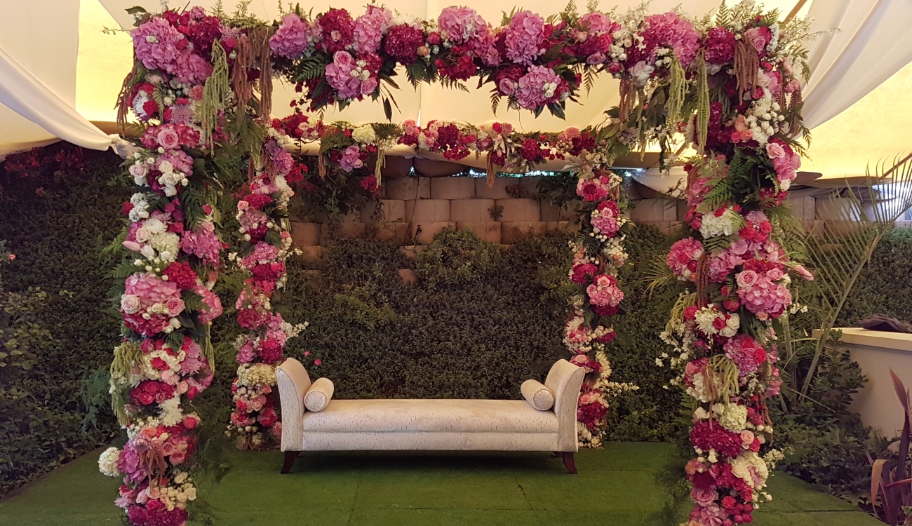 Pink Floral Arches Hydrangeas Roses Amaranthus